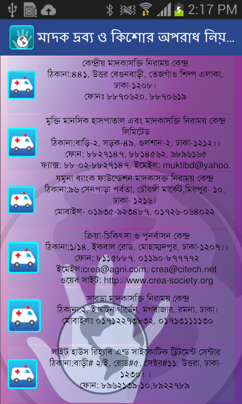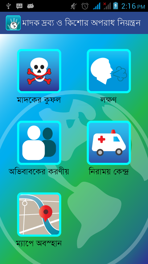 This app shows negative impact of drug abuse very strongly with image and video files. From this app, user will get information about how one addicted can recover him or herself. This application is incorporated with many text, video and audio file to get effective instruction to become free from this illegal activities. Moreover, you will get details about different organization’s address with contact number from where one addicted person can get helps immidiately.