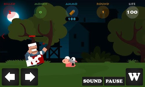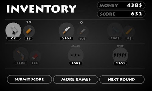 How to play: Press left and right buttons to move, tap on enemy to shoot him, press W button to switch the weapons. Survive as long as possible! At the end of the level press END ROUND to jump to the inventory!