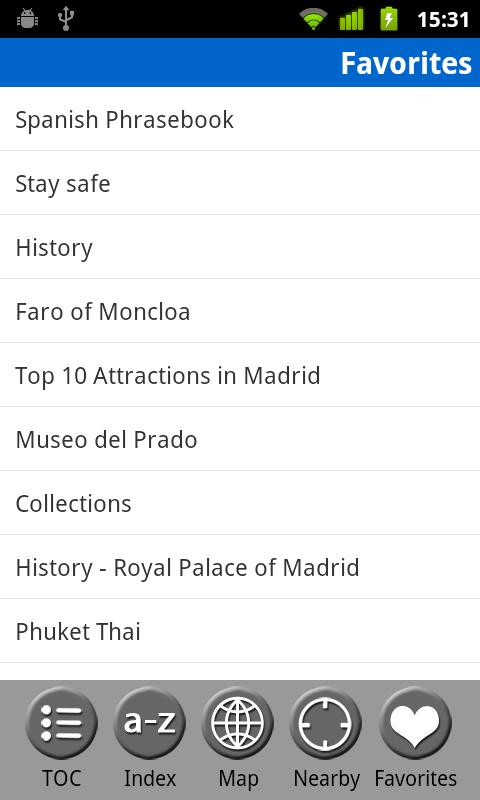 MobileReference Travel Guides provide detailed, practical information about attractions, landmarks, transportation, cultural venues, dining, lodging, history and much more. They are indexed alphabetically and by category, making it easier to access individual articles. Attractions can be viewed on an offline GPS map along with your current location so that you can easily find attractions near you as you explore the city.