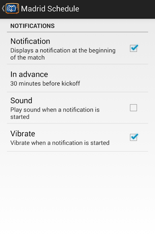 Also you can turn on notifications for the app you remember when the football game starts so you do not miss a match of Madrid.