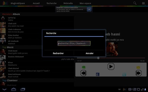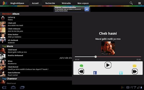 Écouter toute la musique arabe et Maghrébine via l'application MaghrebSpace pour Tablette.