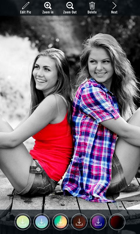 Magic Effect Shapes: Add Shape in Photo Effects with Background as Black and White Photos showing Retro Photo Effect with Color Photos in Photo Shapes including Heart Shapes, Round Shapes, Diamond Shapes and more.