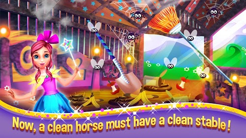 Help the princess to clean the stables and the unicorn house. Learn how to take care of your own magic horse! Everything should be clean and comfortable for the unicorn to feel comfortable and relaxed before having a horse caring and makeover session. If you have always dream of having your own unicorn and be in charge of its horse caring, this is your chance to practice in this caring and beauty makeover salon!