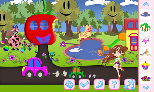Unleash your imagination and create your dream playland by playing this fun decoration game! First create the background choosing a happy forest. These smiley trees just can't wait to have fun in your playground. Then choose a funny house and decorate the yard with a great pool and a slide. Plant some flowers to make your playland more beautiful and when you are ready invite all your friends and have fun! Enjoy this fun kids game!