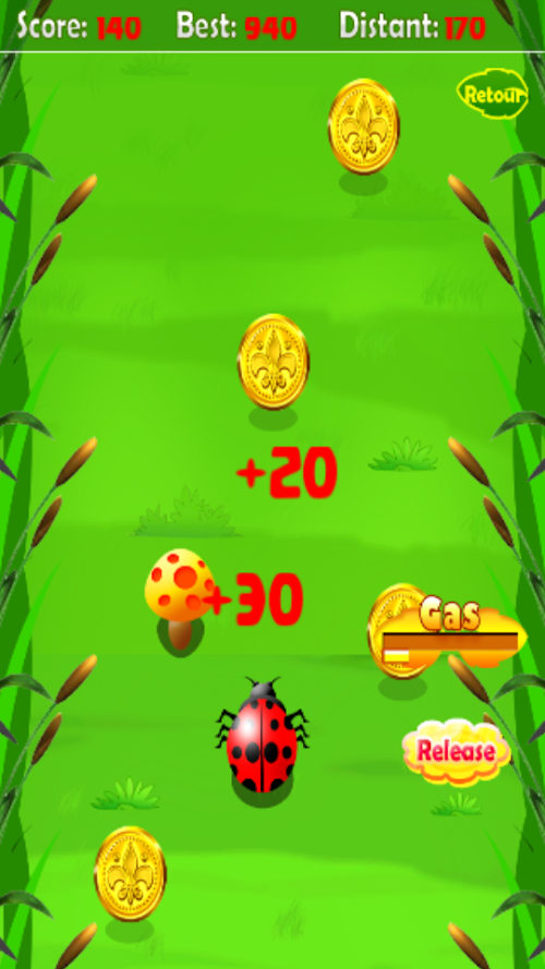 Propel the magic ladybird in the enchanted forest and catch the gold coins and nibbling insects to give more strength to the little while avoiding the terrible pitfalls playful, fun game that develops in toddlers reflex and agility capabilities.