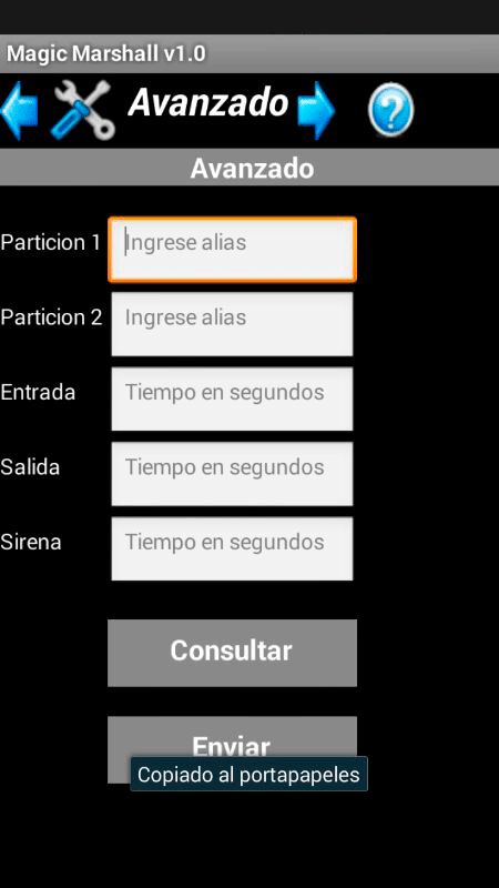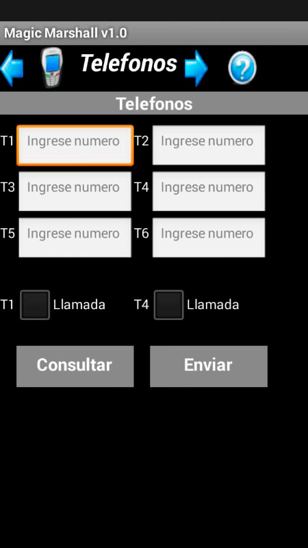 Además en cada pantalla usted dispondrá del botón CONSULTAR, mediante el cual usted podrá conocer la programación que ya tenga la central Marshall GSM.