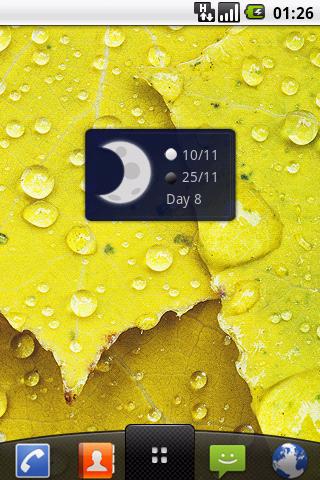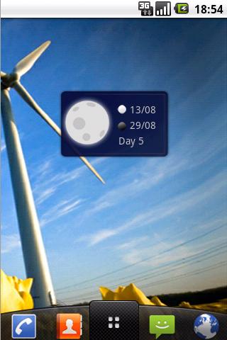 This first version shows in a little widget - from top to bottom respectively - the date of the next Full Moon, the date of the next New Moon and the current age of the Moon.