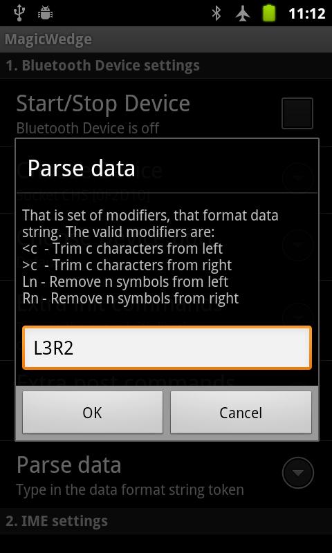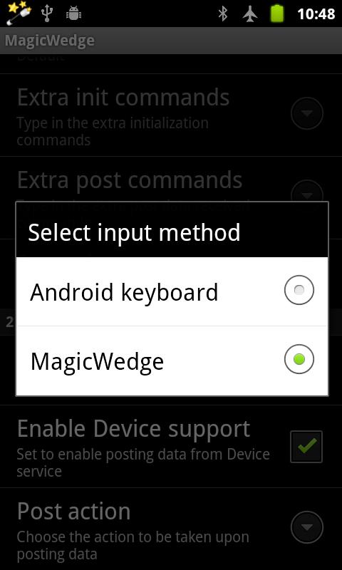 MagicWedge receives data from most mobile/portable Bluetooth (SPP) peripherals such as scanners, scales, GPS transmitters, etc. and post the received data into any foreground application running on your Android device.