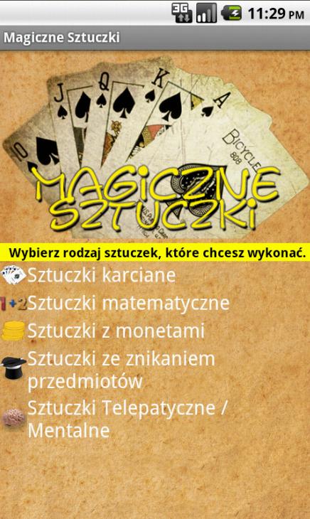 Ta aplikacja nauczy Cię kilku sztuczek karcianych, jak owładnąć czyjeś ciało ( sztuczki typu: druga osoba nie może wstać ), nauczysz się czytać w myślach, znikać przedmioty oraz wykonywać szybkie rachunki matematyczne!