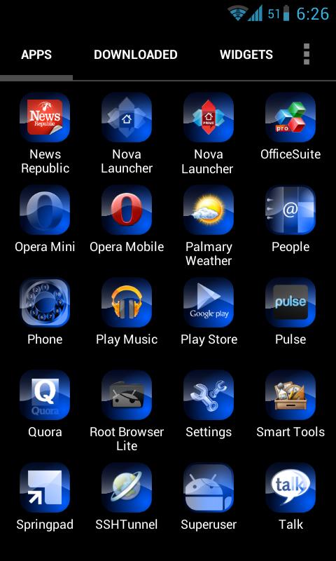 Magnetic HD Theme for Apex Launcher and Nova Launcher – Dark Blue Colored Icons that look great on phones. With 3 HD Wallpapers and tons of custom icons you can totally customize your phone! This theme is compatible with both Apex and Nova Launcher.
