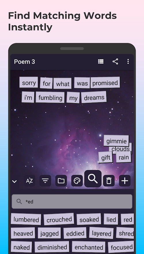 Unleash your creativity with endless word combinations! This poetry app is perfect for poets, writers, and English lovers. With over 3,900 words and the ability to create custom word lists, you'll find inspiration and fun at every turn. Whether you're battling writer's block or exploring new ideas, our app offers hours of creative writing practice.
