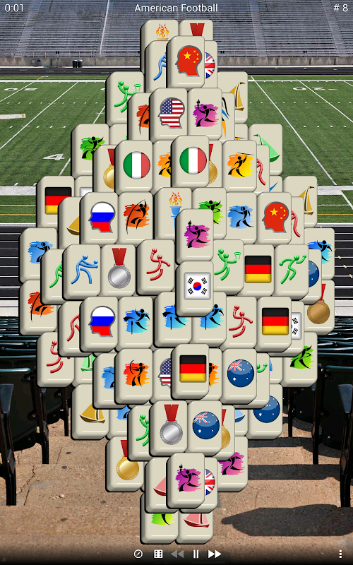 Mahjong Pocket Sports is a Sports themed version of Mahjong Solitaire. The Sports theme extends to Layouts, Background and sounds.