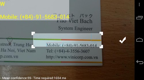 - Allow to scan and input email, phone number data from contact card, magazine, document and the other sources of image data.