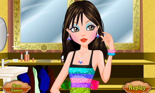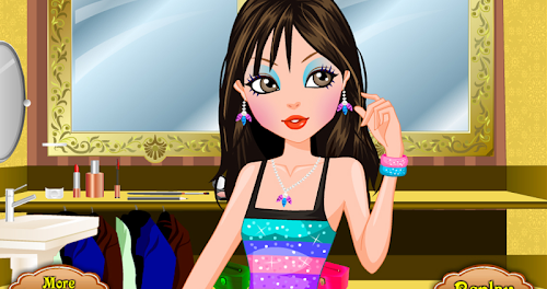 Today you got a cute diva in your Star makeover Spa Salon, A cute diva just walked in and she wants a Makeup Salon treatment, a full makeover and the finishing touch a dressup from you! So get her in your makeup salon chair and get the work started. Start to work on her hair makeup and the finishing touch help her out with the right dress, earrings and necklace for the rest of the day.