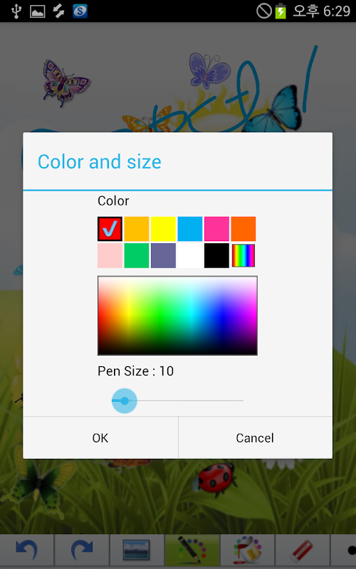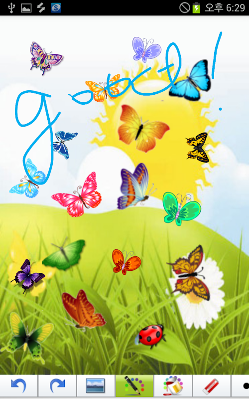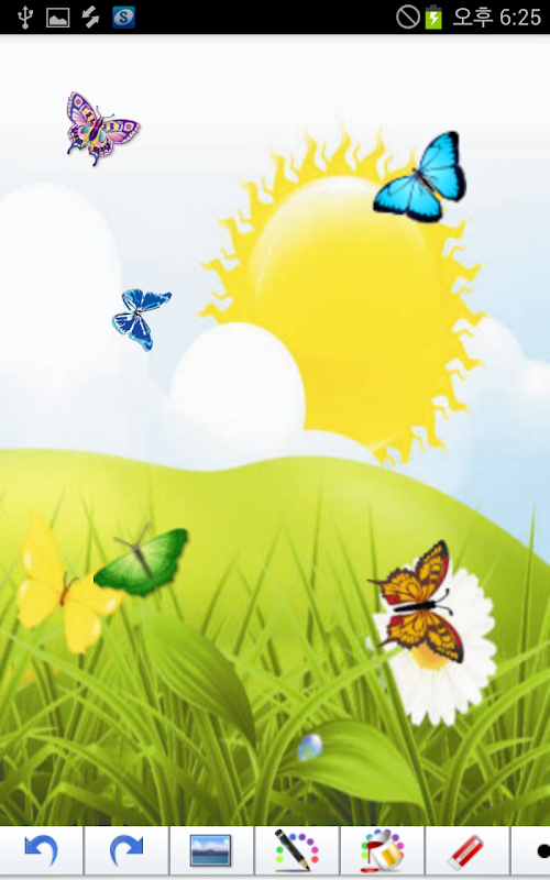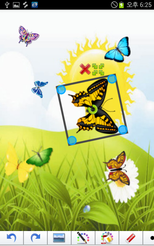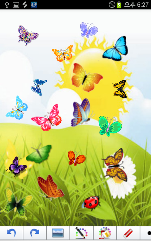 User can add stickers with selection of toolbar. (Kids can choice 21 butterfly stickers.)
