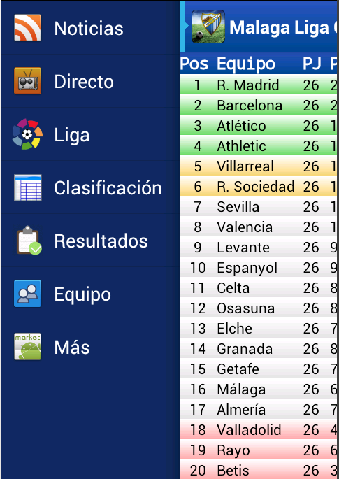 This version of Malaga Liga Gol Android App comes with one universal variant which will work on all the Android devices.