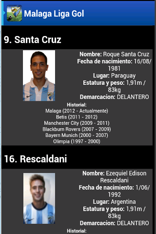Fichas detalladas de todos los jugadores de la primera plantilla.Malaga Liga Gol is an application where you will find news, live broadcasts, and league data template.