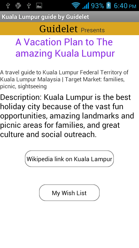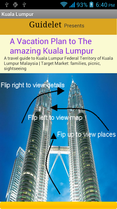 This application help you for guide tour in Malaysia. you can also see famous locations of Malaysia with map.
