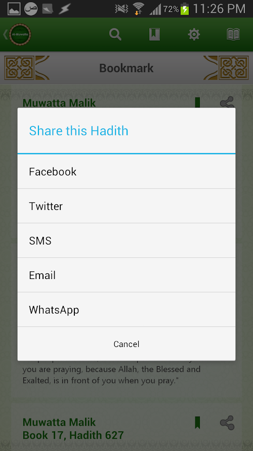 - Share any hadith directly to Facebook, Twitter, WhatsApp, Email & Text