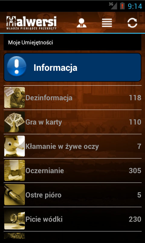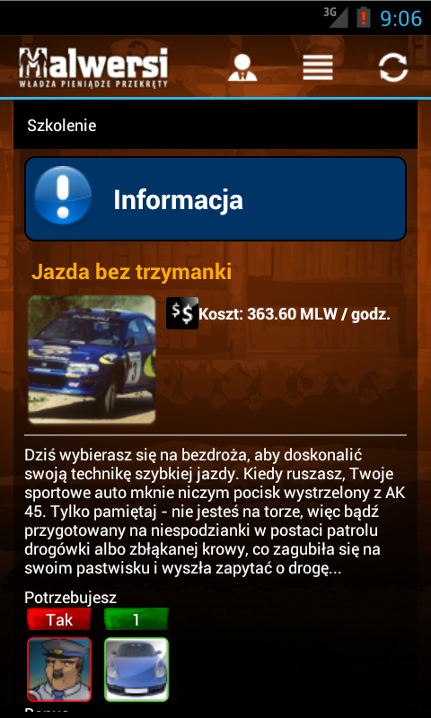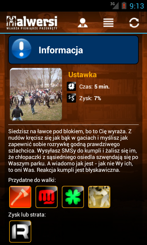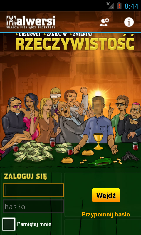Gra Malwersi polega na jak najszybszym pomnażaniu własnego majątku poprzez wykonywanie różnego rodzaju akcji, takich jak Przekręty, Walki, Szkolenia itp. Akcje często bazują na newsach, które powstały w oparciu o autentyczne wydarzenia zaczerpnięte z życia i opisane przez media. Dzięki temu każdy z graczy może wcielić się w rolę bohatera z pierwszych stron gazet i poznać smak władzy, popularności oraz bogactwa!Game Malwersi is multiplying as fast as possible to own property by performing various actions, such as scams, Fighting, Training, etc. Actions are often based on the news, which are based on authentic events drawn from the life and described by the media. As a result, each player can play the role of a hero from the headlines and get a taste of power, popularity and wealth!