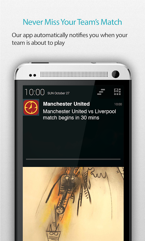 Best of all, 30 minutes before the match starts, this app will ring an alarm.