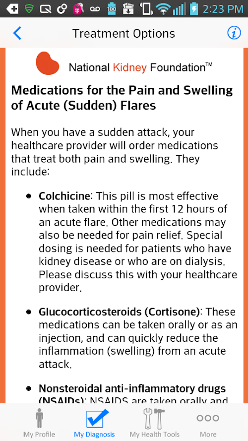 "Managing Gout" empowers patients with the most essential tools and information for controlling gout and protecting their kidneys. Guidance is provided on the optimal use of nutrition, lifestyle, and medication for the prevention and treatment of gout flares. Tools such as the Gout Flare Tracker help both the patient and their doctor devise the best treatment plan based on individual needs.