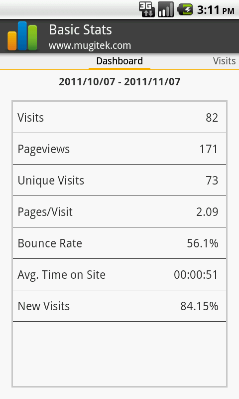 mAnalytics is a program to view your website Google Analytics stats on your android device.