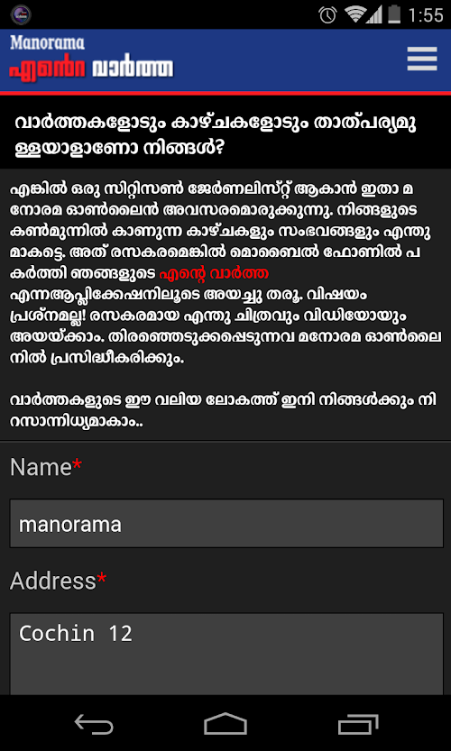 If you come across anything around you that tickles your interest, capture it with your mobile phone and send it to us using the ManoramaOnline's 'Ente Vartha' app. You can send your videos or pictures on any topic and the selected content will be published by ManoramaOnline.