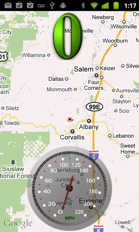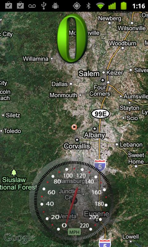 A nice looking analog and digital GPS speedometer that overlays a custom Google maps app.