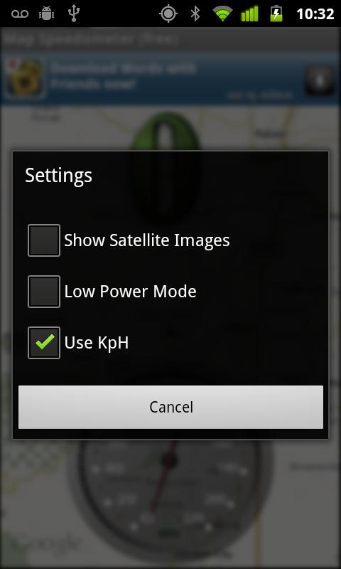 A nice looking analog and digital GPS speedometer that overlays a custom Google maps app.