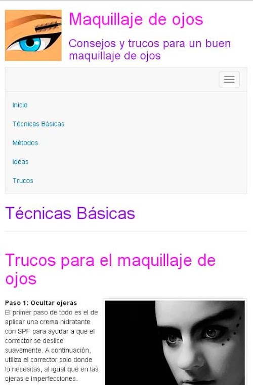 La aplicación da consejos y trucos para conseguir un buen maquillaje de ojos, con técnicas básicas, métodos e ideas para conseguir un buen resultado.