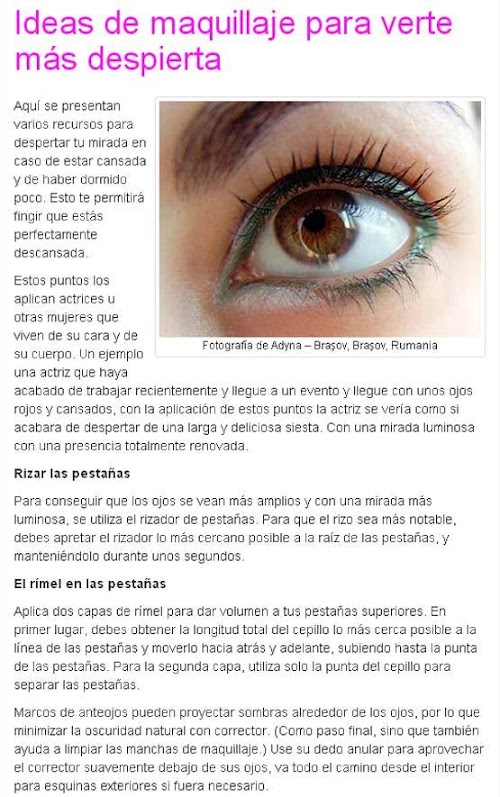 The application gives tips and tricks to get a good eye makeup , with basic techniques, methods and ideas to get a good result.