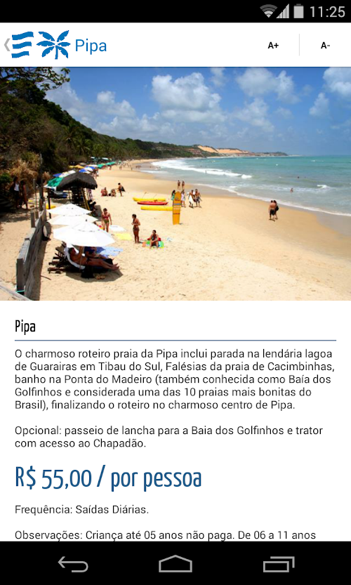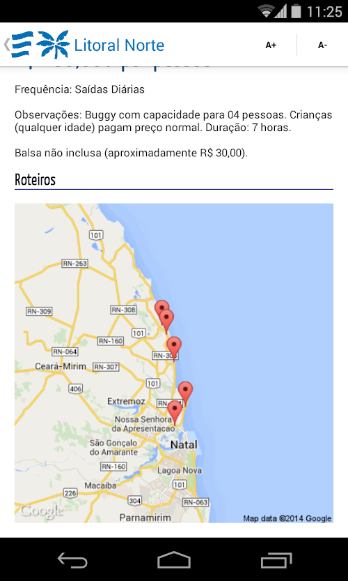 São 14 roteiros oferecidos pela empresa, os quais podem ser conferidos aqui no aplicativo. Valores, descrições e mapas, tudo nas pontas dos seus dedos.