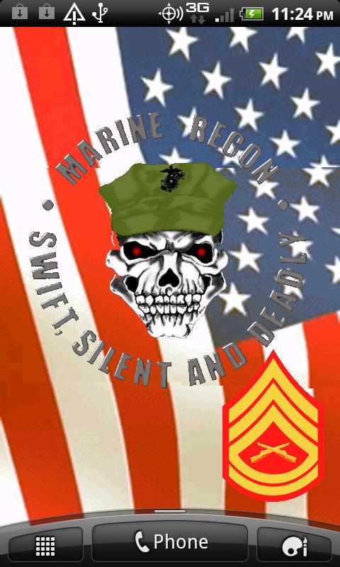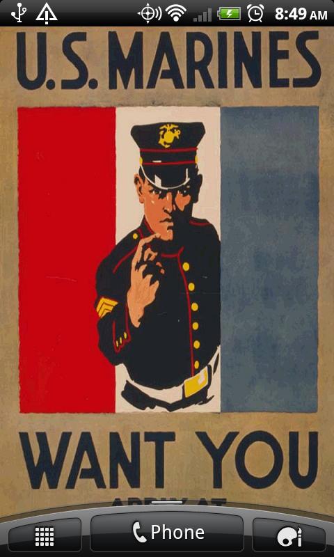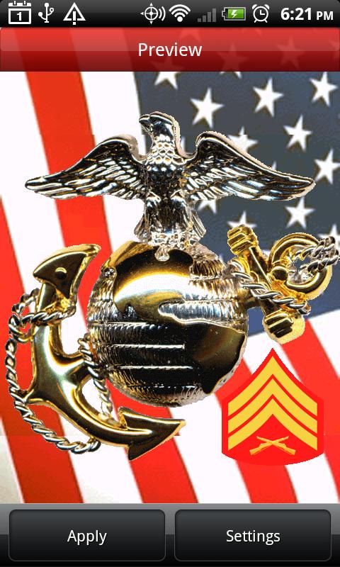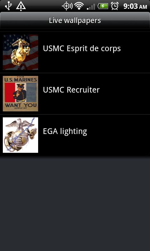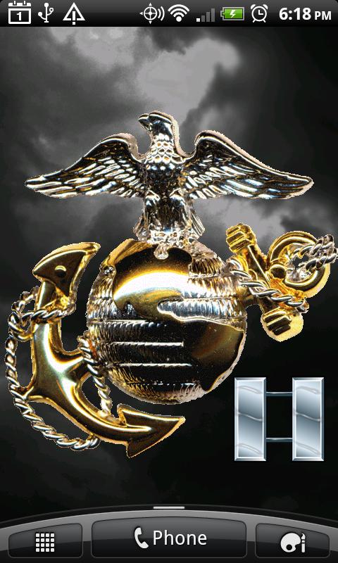 Three live wallpapers in one application. A glowing golden EGA suspended in a storm; touching the EGA creates lightning on the screen. A brightly shined EGA hovers over a brilliantly waving US flag. And a Marine Corps recruiter gestures you to join.