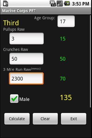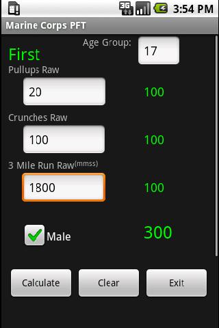The Marine Corps Physical Fitness Test Calculator for Android.