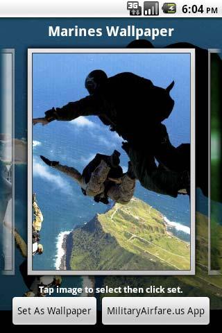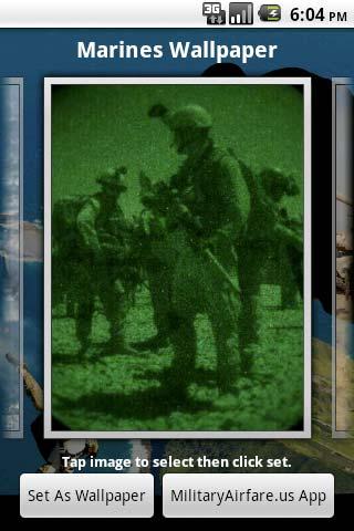 10 amazing shots of life in the Marines as seen by U.S. Department of Defense photographers. This easy to use Wallpaper Application contains photos of aircraft, night vIsion, special ops and other scenes of the U.S. Marines. This Wallpaper application is free, courtesy of MilitaryAirfare.us. Download this and all the rest of the Military Wallpaper applications in the series, there's one for each branch, Army, Navy, Air Force, Marines, Coast Guard.
