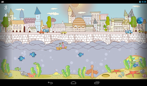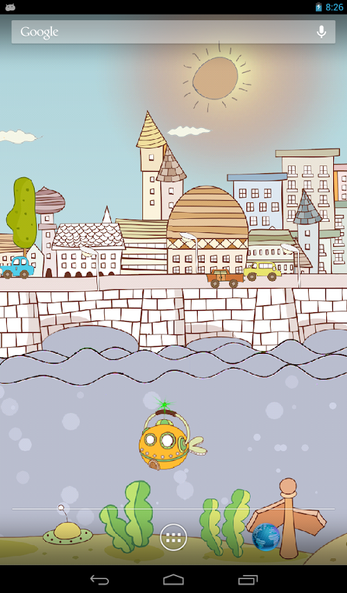 - Many interactive elements – fishes, boat, clouds, windows, UFOs, cars, submarines – they react on screen touches. The interactivity can be turned on\off with the corresponding wallpaper setting.