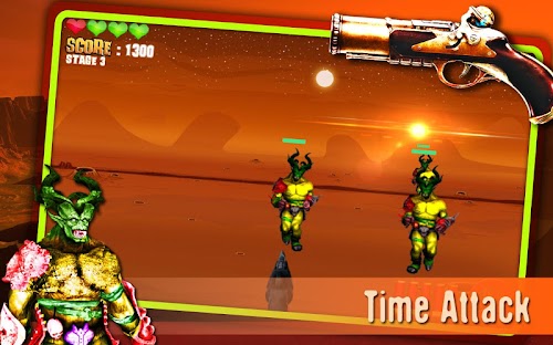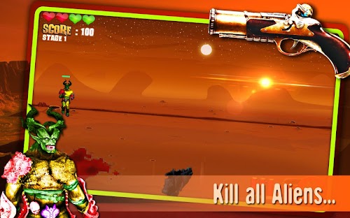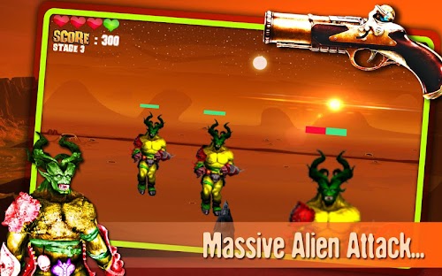 Mars Aliens invades at you coming from every way; there speed is fast charging on you; you are alone have to survive with a laser gun and some bullets in your belts.