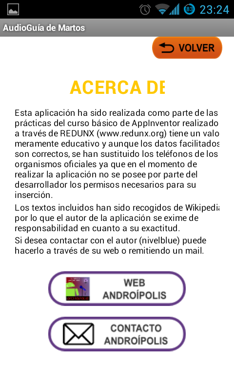 Esta aplicación se ha realizado con AppInventor como parte de un ejercicio del curso "Emprendimiento y App Inventor" de la plataforma Red UNX. Se trata de un curso gratuito en el que se enseña los fundamentos básicos de AppInventor.