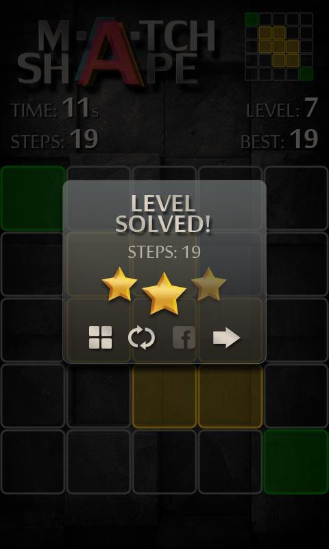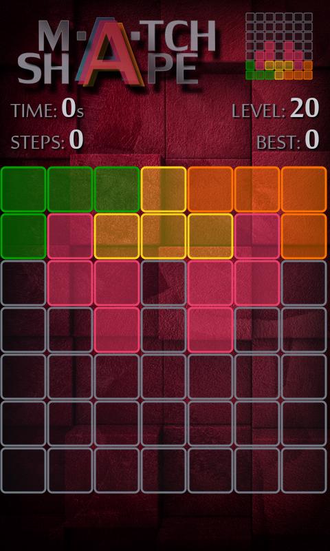 MAS (Match A Shape) is a unique puzzle game, which requires from the player both dexterity and logical thinking. If you are a fan of puzzle games, you must have it on your smartphone or tablet - you surely won't be disappointed!