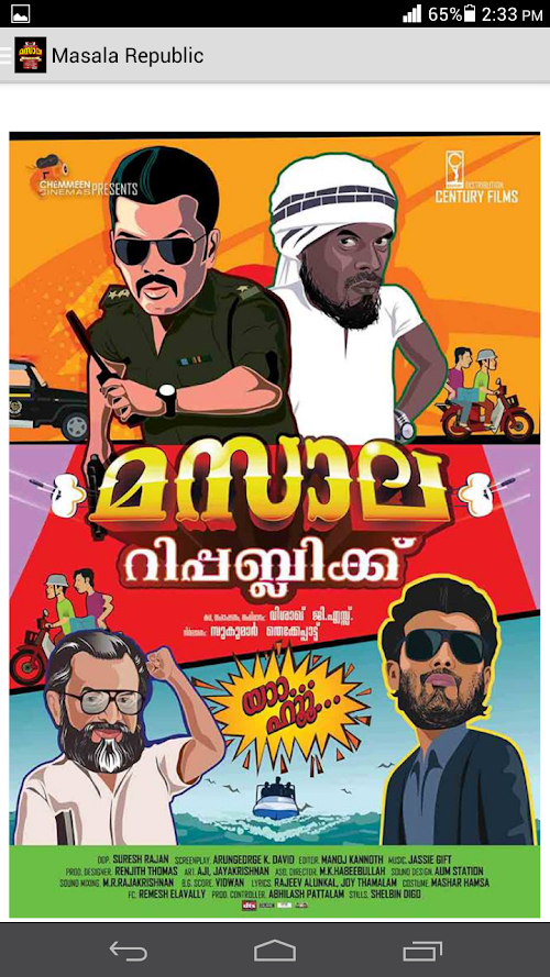 Masala Republic is a satirical comedy with intentionally exaggerated story line and caricature-like characters. The film tries to caricature the socio political scenario in the state of Kerala also the involvement of media.