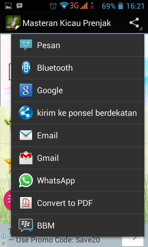 In addition to his voice is good for the masters of birds and as the stuffing, This Application Masteran Kicking Prenjak can also be made in the ringtone in Hp.
