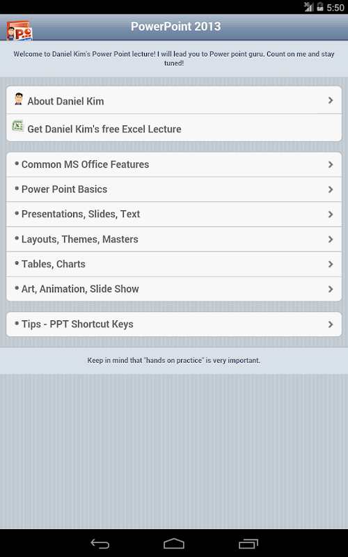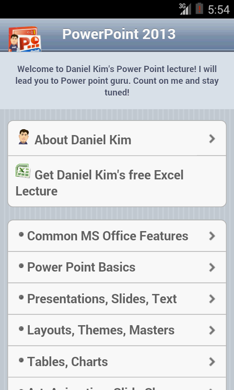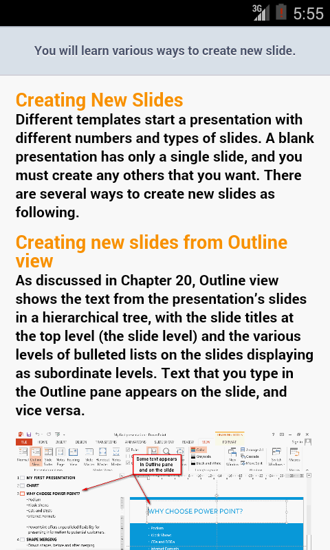You can learn Power Point 2013 easily on your smart phone and tablet for free.