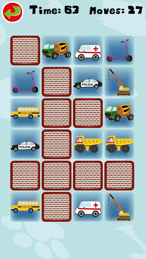 If your kid loves cars and boys stuff he will also like this Memory Game designed especially for boys!