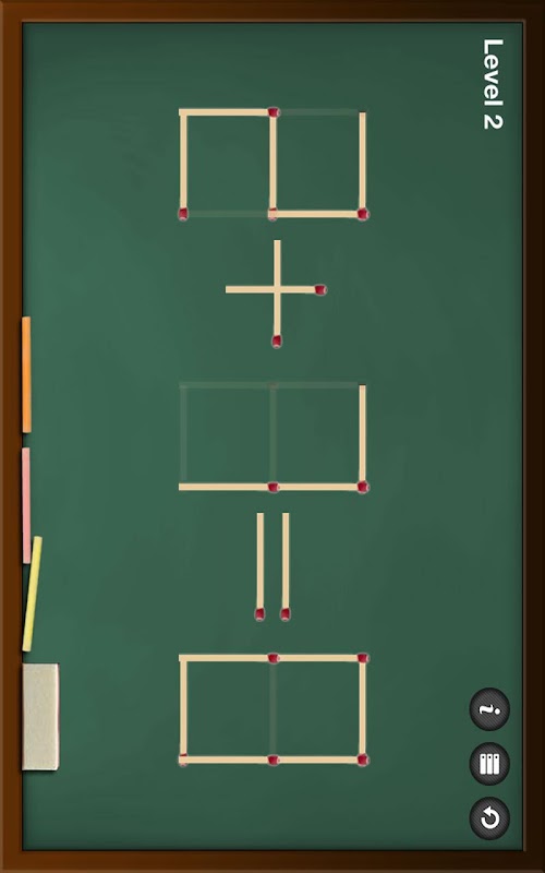 matchstick puzzle is a board puzzle game. That you have to correct the equation with moving matchstick to the right place. Equations may have more than one solution.