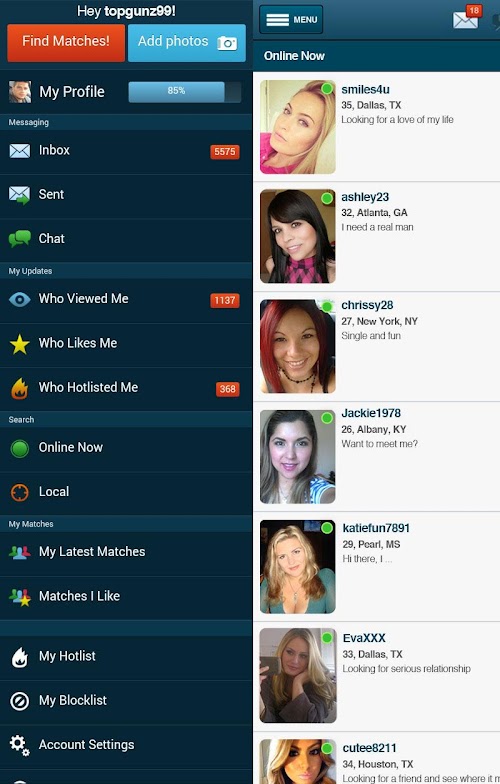 Looking to date local singles? Our app makes it easy for single men and women to meet & chat online. Browse, view pics, send messages and flirt, all on our New dating app. It's 100% FREE to download. The Mate1 dating app is a safe, secure and private place to find a fling, or a serious relationship. See who is online and check out their profile in real-time. Start browsing in seconds!