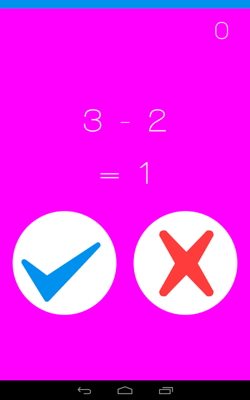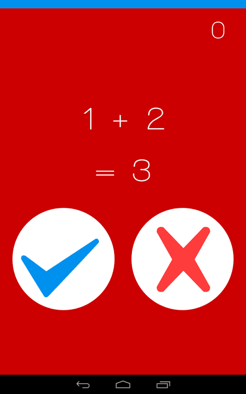 Dalam permainan ini anda ditantang untuk menjawab BENAR atau SALAH sederet penjumlahan dan pengurangan matematika sederhana dengan cepat. Anda diberi waktu 2 detik untuk masing-masing pertanyaan. Cukup mudah bukan?!