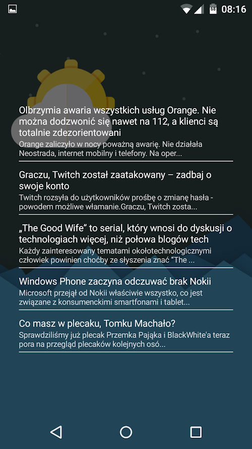- center screen: current weather/3 day forecast, plane ;) , favourite apps buttons
