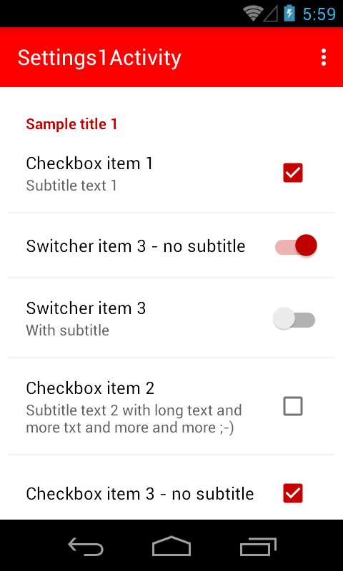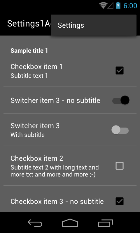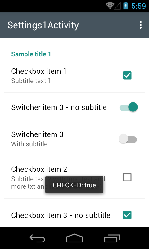 MaterialSettings sample app https://github.com/kenumir/MaterialSettings MaterialSettings sample app https://github.com/kenumir/MaterialSettings