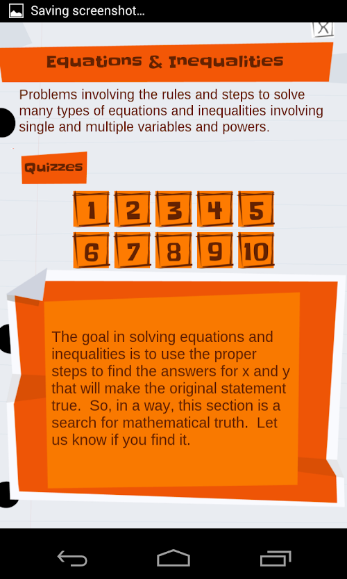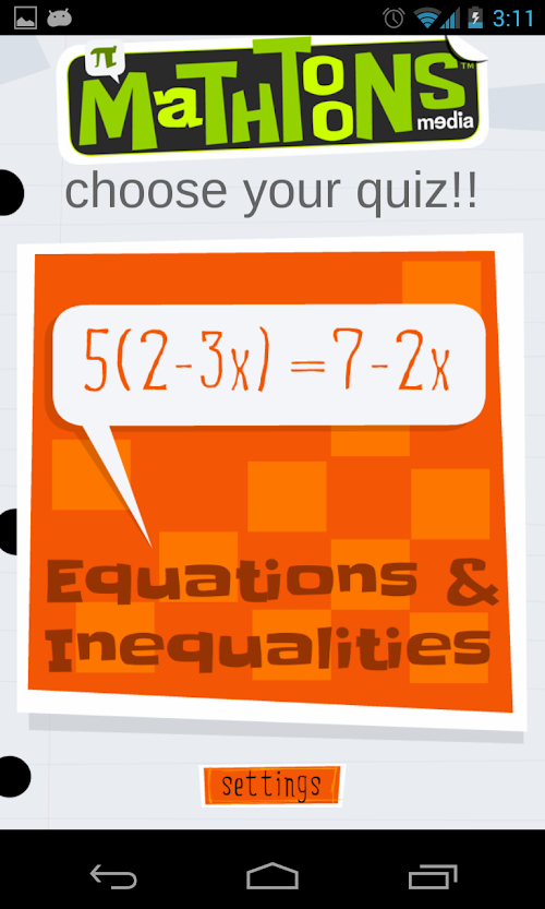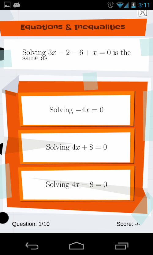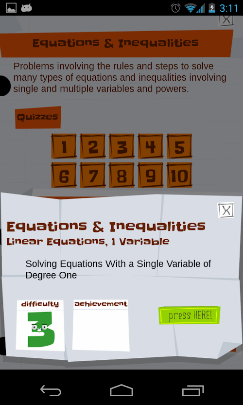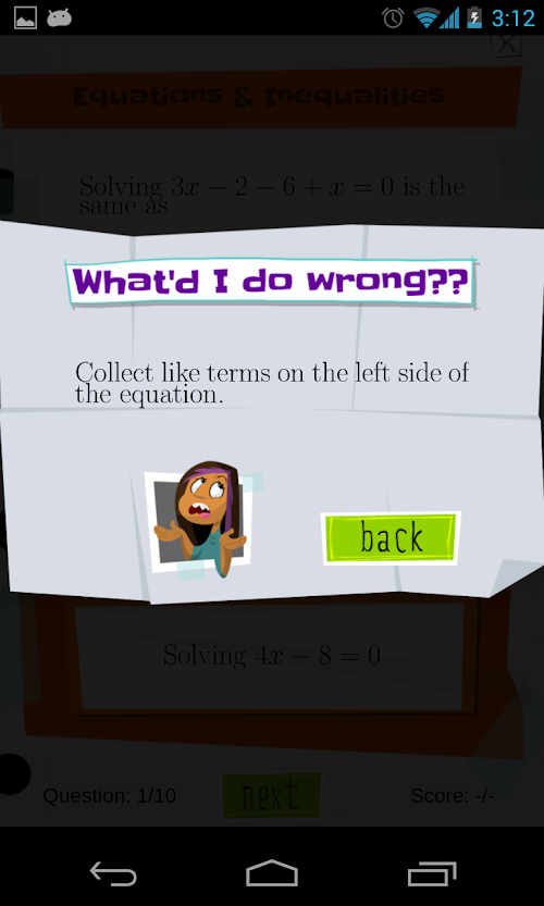 We make high school and college math FUN and EASY with an algebra practice GAME that makes solving equations feel like PLAY!!! Algebra drills are turned into a game and you will learn all the basics of equations, algebra, pre-calculus and quick tricks to make you a MATH ZEN MASTER!!! Get ready for college and university courses by practicing your skills at factoring, solving, graphing, and more and ACE your tests for the SAT, ACT, GCSE and other college entry tests!!!